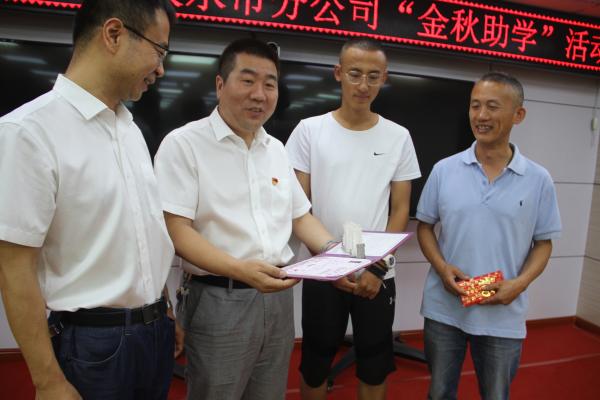 天水市分公司領(lǐng)導(dǎo)殷切期望受到資助的同學(xué)志存高遠,自強不息,早日成才,用實際行動踐行團結(jié)、友愛、互助的良好風(fēng)尚,把分公司黨委、工會的真情關(guān)懷轉(zhuǎn)化為回報社會的強大動力,努力在報效祖國、回報社會、建設(shè)家鄉(xiāng)的偉大事業(yè)中奉獻青春智慧,實現(xiàn)人生價值。