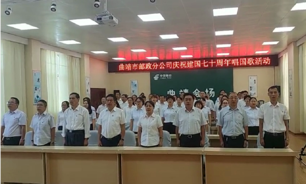 8月23日,曲靖市分公司工會組織開展同唱國歌活動,隆重慶祝祖國建國七十周年。通過同唱國歌活動,激發(fā)員工愛國主義熱情,堅持中國共產(chǎn)黨的領(lǐng)導(dǎo),以習(xí)近平新時代中國特色社會主義思想為指引,為祖國繁榮昌盛貢獻(xiàn)郵政力量。