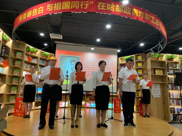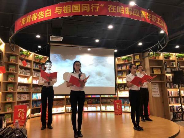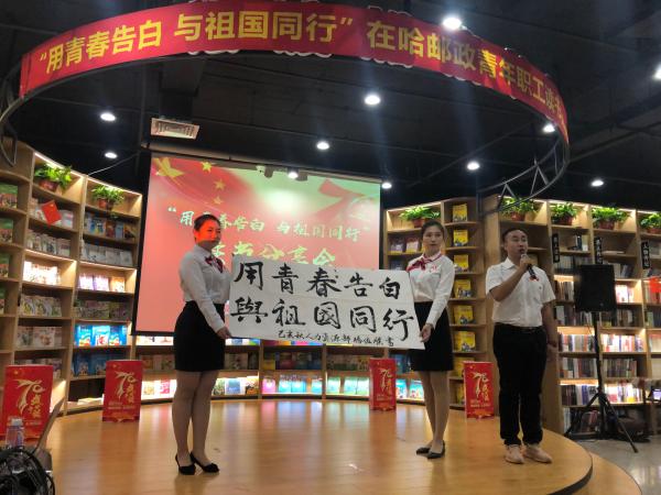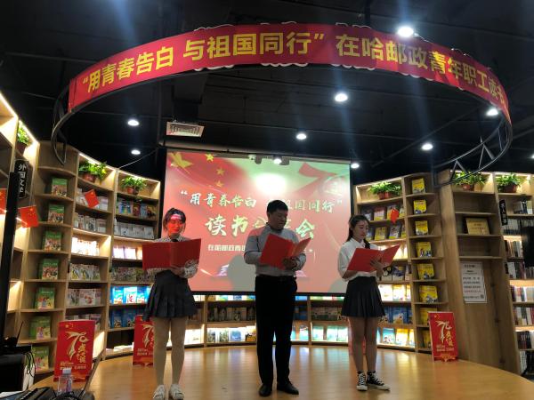 9月27日下午,為熱烈慶祝建國70周年,進一步激勵青年職工熱愛學習、積極向上,營造書香郵政的濃厚氛圍,省郵政工會、哈爾濱市分公司報刊發行局黨支部、省分公司直屬機關團委在郵政匯文書愿舉辦了“用青春告白 與祖國同行”在哈郵政青年職工慶祝建國70周年讀書分享會活動,省寄遞事業部、哈爾濱市分公司、哈爾濱郵區中心局、省機要通信局、省信息技術局、省分公司機關、中郵保險黑龍江分公司、中郵證券黑龍江分公司等在哈郵政單位的百余名青年職工參加了此項活動,省分公司黨組成員、紀檢組組長任宣,省分公司辦公室、人力資源部、審計部、黨建工作部、集郵與文化傳媒部以及省郵政工會的負責人蒞臨了讀書分享會現場。