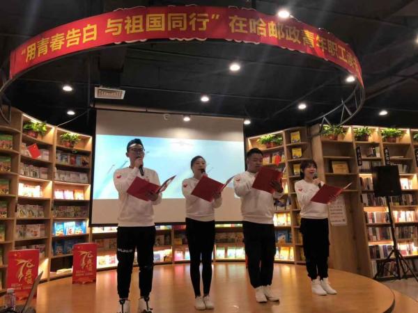 本次活動的主題是“用青春告白 與祖國同行”。青年職工們用熱情洋溢的感情和聲音深情誦讀了經典《祖國頌》《新青年敢作為 共筑中國夢》等;認真推薦分享了《紅樓夢》《讀書無用》《遠離無趣 追求自由》等,介紹了自己的讀書經驗和讀書感悟;還演唱了《不忘初心》《最美的歌送給媽媽》等,省郵政工會黨支部和哈爾濱市分公司報刊發行局黨支部聯合朗誦了《可愛的中國》。分享會的16個節目精彩紛呈,臺下的觀眾掌聲不斷。最后,讀書分享會在百余人大合唱的《歌唱祖國》歌聲中落下了帷幕。