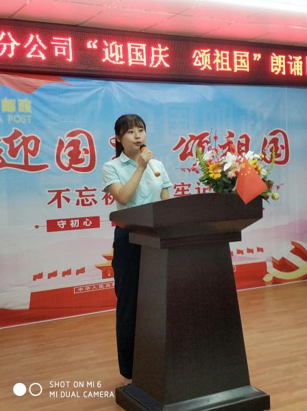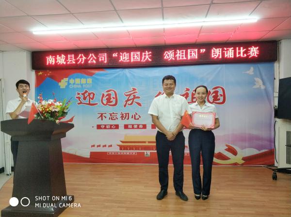 為隆重慶祝中華人民共和國成立70周年,大力弘揚以愛國主義為核心的偉大民族精神,在全縣郵政廣泛開展形式多樣、豐富多彩的群眾性主題宣傳教育活動,9月28日,我南城縣郵政工會舉辦了全縣郵政“迎國慶 頌祖國”朗誦比賽。
