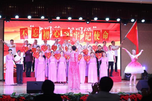 匯演圍繞“不忘初心跟黨走,頌歌唱響新時代”這一主題,在歌曲《中國中國鮮紅的太陽永不落》中拉開序幕。各代表隊身著統一服裝,懷揣對黨和祖國的熱愛,相繼演唱了《今天是你的生日》《歌唱祖國》《在燦爛陽光下》等15支歌曲,一首首鏗鏘有力、膾炙人口的經典紅歌在會展中心唱響,讓觀眾的愛國之情油然而生。最后,全場激昂合唱《我和我的祖國》,整個會場紅旗揮舞,熱血沸騰,歌聲嘹亮,共同祝福我們偉大的祖國,將全場氣氛推至最高點。