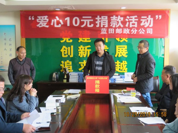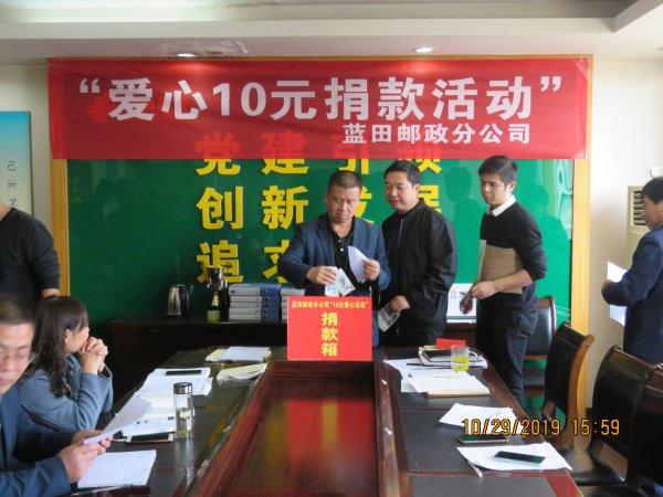 在我們身邊,還有許多貧困母親和貧困兒童以及殘疾人家庭因貧困難以維持正常生活,為了充分發揚中華民族“扶危濟困”的傳統美德,讓我們每一個職工都伸出溫暖的雙手,奉獻一片真摯的愛心,藍田郵政分公司于2019年10月29日,開展了愛心10元捐款活動,倡議職工每人捐獻10元,為貧困家庭獻上一份愛心。點滴愛心暖流,一縷冬日陽光,感受真情友愛。捐款采取自愿原則,金額不限。100名職工參與了本次愛心10元捐款活動,捐款金額1240元,捐款全部匯往陜西省慈善協會對公賬戶,用于貧困家庭幫扶。