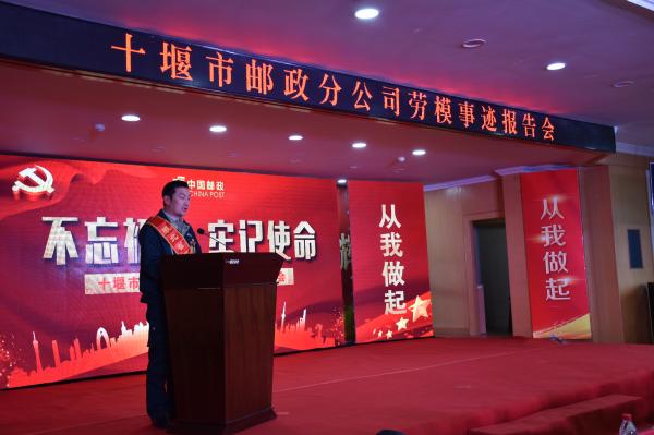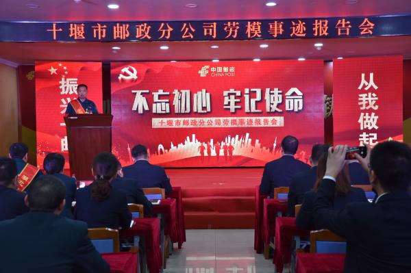 10月26日,十堰市分公司隆重舉辦“不忘初心、牢記使命”勞模事跡報告會。對照先進典型,弘揚勞模精神,激勵全市郵政員工進一步強化堅定責任、勇于擔當、奮發有為,用先進的思想武裝人,用身邊的榜樣感染人,用高效的執行引領人,用優秀的業績鼓舞人。市分公司領導,市分公司各部室、直屬單位負責人,各縣(市、區)分公司領導班子成員,全市網點支局經理等150余人參加了報告會。