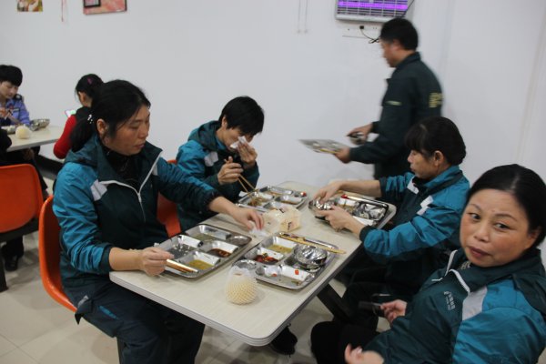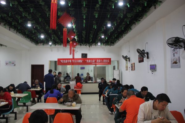 整個(gè)職工食堂里,“珍惜糧食,杜絕浪費(fèi)、文明用餐、從我做起”標(biāo)語(yǔ)隨處可見,餐后“光盤”隨處可見。
