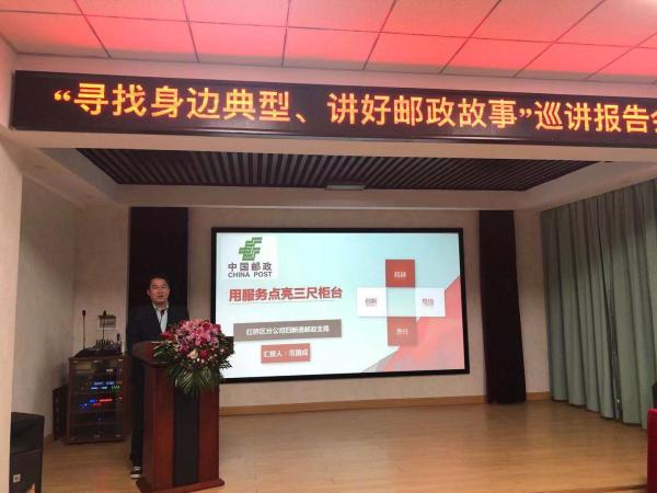 “尋找身邊典型、講好郵政故事”主題巡講活動就是第二批“不忘初心、牢記使命”主題教育的重點活動之一。天津郵政成立了評委會,各單位按照市分公司要求從愛崗敬業、真情服務等5個方面尋找身邊典型人物。各單位通過民主選舉、逐級推薦,共選樹出先進典型54人,經過兩輪評審,共推選出來自不同專業的12名先進典型人物。公司黨委還先后組織了兩場“身邊典型”勞模座談會和典型事跡交流會。市分公司黨委辦公室配合市分公司工會撰寫巡講稿件,為12名先進典型人物錄制了專題宣傳視頻,在各單位樓宇大廳和基層單位滾動播放,同時利用微信公眾號及時宣傳報道,號召全體員工關注并參與學習交流。市分公司工會成立了“身邊典型”8人宣講團,于第二批主題教育期間在各單位開展巡講,與一線員工面對面交流經驗,唱響主旋律,傳遞正能量,共同營造戰勝困難、共謀發展的良好氛圍。