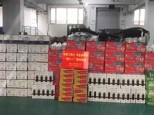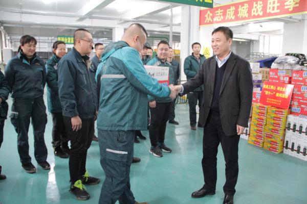 每到一處,謝總都親切的與員工握手交談,跟進了解員工生產(chǎn)、生活情況。對大家不待揚鞭自奮蹄的敬業(yè)精神給予了充分肯定和高度贊揚,鼓勵大家繼續(xù)卯足干勁,奮勇拼搏,為接下來的“雙十二”、“年底大收官”,為旺季生產(chǎn)打一場漂亮的開局戰(zhàn)!慰問中,謝總還一再叮囑大家,天冷路滑,注意防寒保暖,注意行車安全。