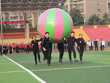 此次運動會設(shè)置了鴻運彩球、龜兔賽跑、動感五環(huán)、瘋狂毛毛蟲、智傳呼啦圈、八人九足、拔河等七個項目。項目設(shè)計充分體現(xiàn)了“全員參與、全面發(fā)展”的活動理念,將“趣味”這一思想融入運動會,從開幕式到所有項目的比賽,真正體現(xiàn)了趣味性和娛樂性。