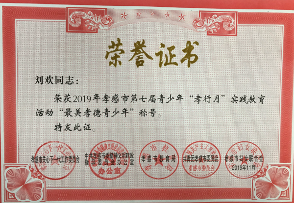 近日,孝感市直第七屆“孝行月”實(shí)踐教育活動總結(jié)表彰大會在云夢縣舉行,會議表彰了在第七屆“孝行月”活動中涌現(xiàn)出來的美美孝德青年少、最佳家長、最佳五老志愿者、最優(yōu)班主任,并為他們頒發(fā)了榮譽(yù)證書和紀(jì)念品。孝感郵政2名職工受到了表彰,其中劉歡榮獲“最美孝德青少年”稱號,郭元發(fā)榮獲“最佳五老志愿者”稱號。