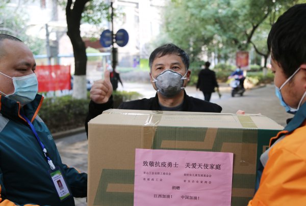 當(dāng)天上午9點(diǎn),“致敬抗疫勇士 關(guān)愛(ài)天使家庭”“國(guó)家有需要 郵政在行動(dòng)”……在南昌市郵政分公司大院內(nèi),明媚的陽(yáng)光灑照在一輛輛綠色郵車(chē)上,車(chē)身兩側(cè)的標(biāo)語(yǔ)橫幅溫暖耀眼,來(lái)自江西省總工會(huì)女職工委員會(huì)、省郵政工會(huì)、省婦女兒童發(fā)展基金會(huì)、省女企業(yè)家商會(huì)的數(shù)十名愛(ài)心人士正忙碌搬運(yùn)著一份份“特殊包裹”,一場(chǎng)“關(guān)愛(ài)逆行天使”活動(dòng)正在進(jìn)行。
