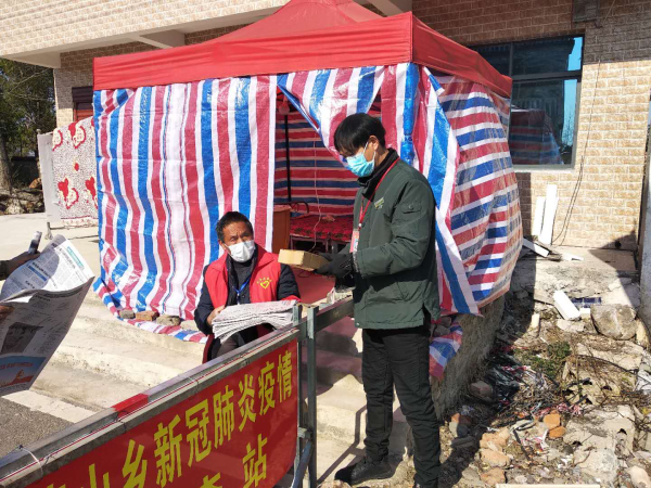 為了做好疫情防控,許師傅除了按時投遞郵件,還參加到在鄉里的疫情檢查站做志愿服務,對街道路口來往的車輛和人員進行登記,檢查測量體溫,和其他志愿者一起到鄉里粘貼疫情防控通告,義務宣傳疫情的傳播風險和個人防護。