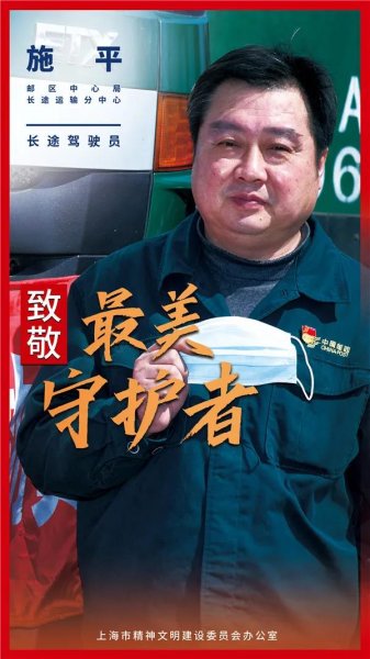 近期,上海市精神文明建設委員會辦公室開展“致敬!最美守護者”公益形象展示系列活動,對防控新冠肺炎疫情期間仍堅守崗位保障城市運行工作者進行拍攝宣傳報道。值得驕傲的是上海郵政兩位優秀同志入選最美守護者。他們分別是普陀區寄遞事業部新村路營業部投遞員楊輝、郵區中心局長途運輸分中心濟南線駕駛員施平。