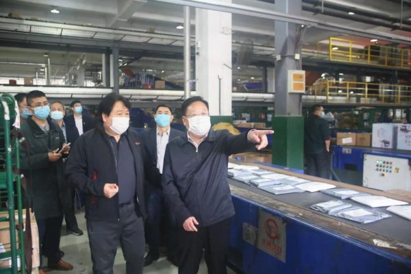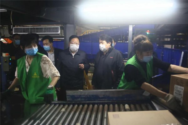 3月25日下午,在全省抗擊疫情形勢持續向好,有序推進復工復產的關鍵時刻,湖北省總工會黨組書記、常務副主席董永祥在省郵政分公司黨組書記、總經理任永信的陪同下,冒著小雨,趕赴武漢郵區中心局,調研指導疫情防控和復工復產工作,看望慰問一直奮戰在抗疫一線的郵政職工。