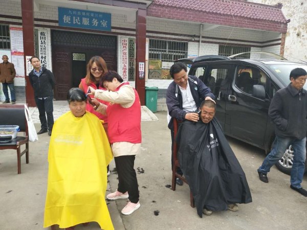 把鄉(xiāng)親所盼放在心上。5月13日,發(fā)改委沈鞏利主任和藍田分公司協(xié)商,聯(lián)絡藍田縣志愿者協(xié)會,為這些貧困戶義務理發(fā),理發(fā)地點設在九間房鎮(zhèn)何家川村村委會門前,村干部召集二十余名村民前來理發(fā)。