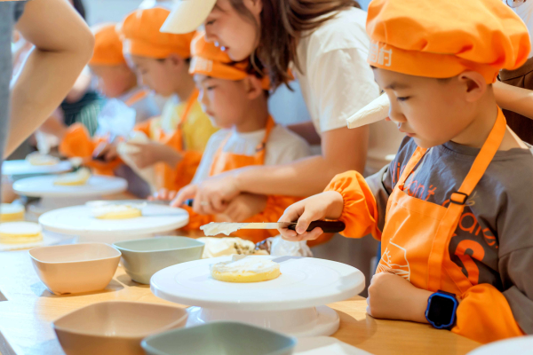 烘焙課正式開課時,小朋友們立馬進入了課堂狀態,像在學校一樣端正態度,小眼睛緊盯老師,聚精會神的聽教學老師講述蛋糕制作過程,不放過任何細節,連老師都夸獎小朋友們是她帶過的最乖的一屆學員。