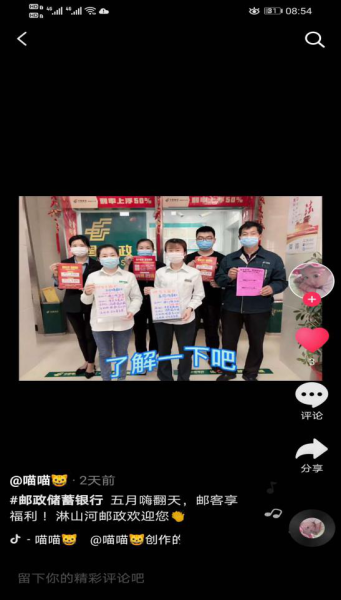 本次活動通過抖音、微信朋友圈的宣傳方式參加評比,全縣10個單位共上報了19部宣傳作品參賽,其中集體制作9部,個人制作10部。通過對宣傳作品視覺效果和宣傳效果評比,杜皮支局孫靜抖音《“五一”金融產品簡介》、總路咀支局裴翠云抖音《郵政金融業務宣傳》、金融業務中心抖音《“五一”產品推廣》三部作品榮獲優秀宣傳作品將獎,賈廟支局邵明君、金融業務中心、馬曹廟支局劉宸辰、團黃路網點楊溢、方高坪支局王曉燕五部作品榮獲人氣宣傳作品獎。