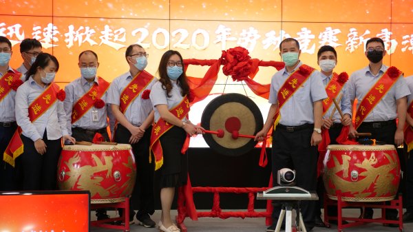 最后區分行行領導和相關主辦部門負責人敲鑼擊鼓,正式宣布2020年“抗疫情、敢擔當、爭先進、比貢獻,迅速掀起2020年勞動競賽新高潮”主題勞動競賽活動正式啟動!