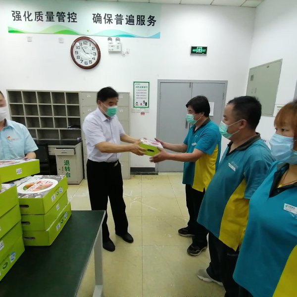 夏至已至,天氣漸熱。6月22日,一箱箱承載著朝陽郵政工會端午祝福與疫情慰問的北寨紅杏來到了職工手中。朝陽區分公司領導親自將這些紅杏發到了一線職工手中,一方面表達了企業對于自疫情以來一直默默付出并堅守崗位的一線職工的感激之情,同時再三囑咐大家,在夏季時節一定要注意各方面的生產安全事項,并強調了今夏的“三防”重點工作——防疫、防暑、防汛,時刻將安全擺在第一位,以此確保經營工作順利開展。