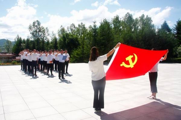在王德泰紀(jì)念碑前,黨員們佩戴黨徽,面對黨旗莊嚴(yán)舉起右手,面向鮮紅的黨旗,重溫入黨誓詞,表達(dá)了不忘初心、牢記使命,為黨的事業(yè)奮斗終身的決心和信念。通過追憶王德泰烈士的豐功偉績和東北軍民與日寇浴血奮戰(zhàn)的犧牲精神,進(jìn)一步激發(fā)了全體黨員的愛國熱情,增強(qiáng)了加快企業(yè)發(fā)展的責(zé)任感和使命感。