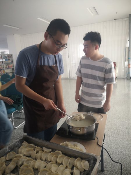 在輕松、歡樂的氣氛中,大家互教互幫,各顯神通,沒多久一盤盤各有特色的餃子新鮮出爐了。看著自己的辛勤勞動成果,每個人的臉上都洋溢著笑容,紛紛拿出手機拍自己包的餃子留念,活動中心傳出一陣陣歡聲笑語。
