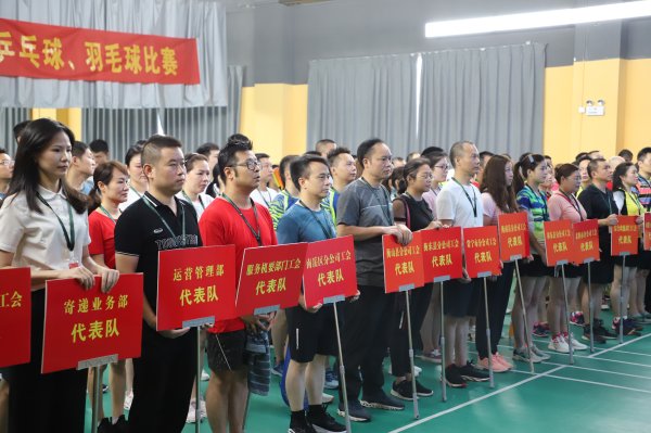 7月23日,衡陽郵政第七屆“幸福杯”職工乒乓球、羽毛球比賽在衡陽市五環全民健身廣場隆重舉行。市分公司黨委書記、總經理杜輝以及副總經理、工會主席賴紅升蒞臨開幕式指導,來自全市郵政各基層工會的21支代表隊近百名運動員參加比賽。