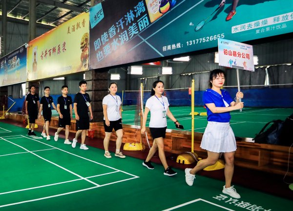 7月23日上午,由上饒市郵政分公司和市郵政工會(huì)聯(lián)合舉辦的“饒郵杯”羽毛球比賽拉開序幕,來自全市郵政的15支代表隊(duì)齊聚羽毛球場(chǎng),列隊(duì)整齊,蓄勢(shì)待發(fā)。市分公司黨委書記、總經(jīng)理呂茂華,黨委委員、紀(jì)委書記劉穎蕾,黨委委員、副總經(jīng)理盧敏出席開幕儀式,市分公司黨委委員、工會(huì)主席陳超作開幕致辭。他表示,開展羽毛球運(yùn)動(dòng)可以強(qiáng)健體魄,幫助養(yǎng)成良好健身習(xí)慣,同時(shí)希望參賽的運(yùn)動(dòng)員們?cè)诮酉聛淼馁惓讨?,友誼第一,比賽第二,享受比賽,賽出水平,賽出精彩。呂茂華宣布比賽正式開幕。
