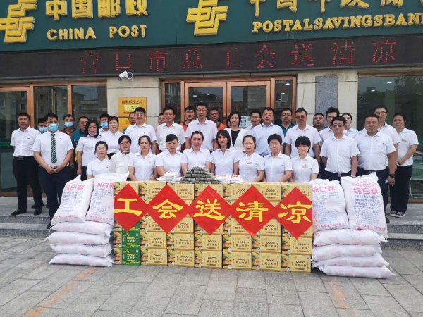 7月30日上午,市總工會開展夏季送清涼活動,為營口郵政一線職工送來盛夏清涼。工會主席高娜、副主席伍毅、桑德軍等參加慰問活動。