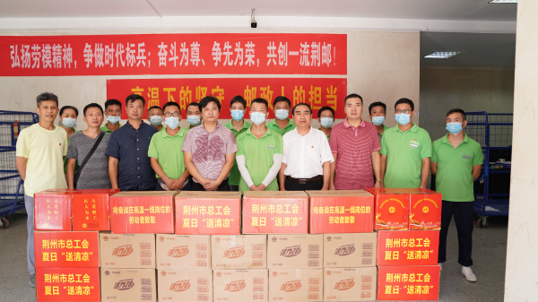 8 月10 日,荊州市總工會黨組成員、經(jīng)費審查委員會主任董軍一行來到沙市區(qū)郵政分公司江津快遞攬投班,開展“夏送清涼”慰問活動,為一線投遞員和攬投員送來關(guān)懷和問候,感謝他們在烈日下的堅守。