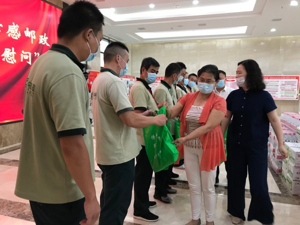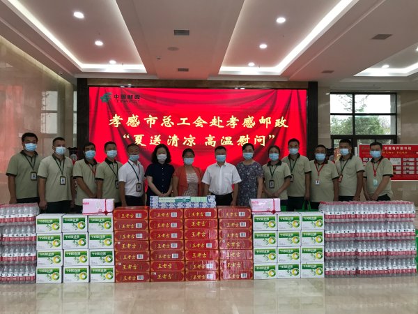 孝感市總工會黨組成員、副主席李朝霞一行到孝感市分公司,慰問奮戰(zhàn)在一線的郵政快遞員、郵運(yùn)司機(jī),為他們送上了礦泉水、涼茶、金銀花露、毛巾、香皂、風(fēng)油精、人丹等防暑物資。