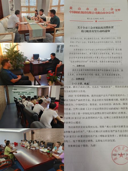 自省郵政工會組織開展開展抗疫消費扶貧助力脫貧攻堅行動以來,黃山市分公司領導高度重視,市郵政工會會同市渠道平臺部多次會商市總工會、市扶貧開發局等部門,獲得了政府領導的認可和支持。近日,黃山市總工會與市郵政公司聯合發文,特別明確了黃山郵政的主渠道作用,指定各基層工會組織集中采購貧困村農副產品要統一到郵政公司要數,由郵政公司統一配送,并將貨款匯入郵政指定賬戶。
