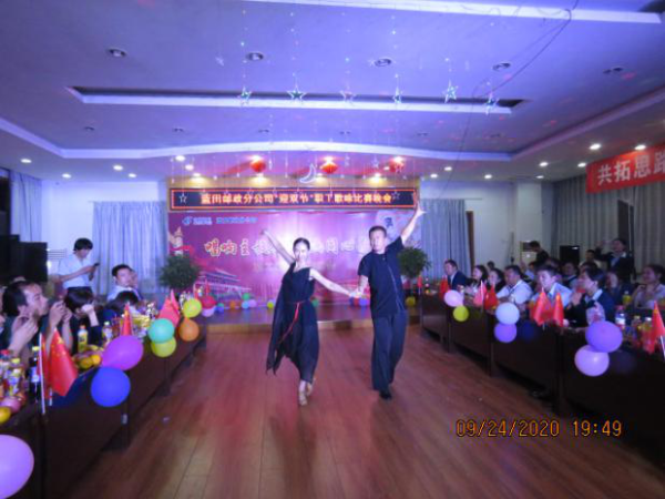 “雙節”即將到來,為了喜迎“雙節”,西安藍田縣郵政分公司于2020年9月24日舉辦“唱響主旋律,畫好同心圓”職工歌詠比賽晚會,分公司全體職工參加。通過活動的開展,激發職工唱好郵政發展好聲音,講好業務營銷好故事,體現弘揚主旋律,傳播正能量,傳承企業優秀文化,培育職工興文化、聚人心、樹形象的良好面貌。