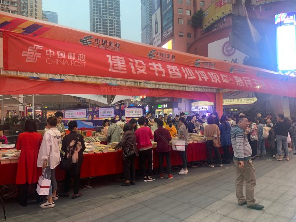 為積極倡導(dǎo)全民閱讀活動(dòng),大力營(yíng)造全民閱讀活動(dòng)氛圍,結(jié)合當(dāng)前“沙坪壩三峽廣場(chǎng)消費(fèi)節(jié)”,沙坪壩郵政“文化惠民消費(fèi)季 ”全民閱讀書(shū)香沙坪壩圖書(shū)展正式啟動(dòng)。此次活動(dòng)響應(yīng)“全民閱讀、文化惠民”號(hào)召,沙坪壩郵政專(zhuān)場(chǎng)為廣大消費(fèi)者提供全新正版圖書(shū),低價(jià)回饋?zhàn)x者,活動(dòng)現(xiàn)場(chǎng)展示圖書(shū)共上千余冊(cè),門(mén)類(lèi)齊全,現(xiàn)場(chǎng)購(gòu)書(shū)買(mǎi)2本贈(zèng)5本,還有精美小禮品贈(zèng)送。直至夜幕降臨,圖書(shū)巡展仍在如火如荼開(kāi)展中,燈下人流不斷,不少人駐足觀看,挑選圖書(shū)。秋雨兮兮也擋不住大家的買(mǎi)書(shū)熱情,截止9月23日晚,實(shí)現(xiàn)銷(xiāo)售收入5萬(wàn)余元。