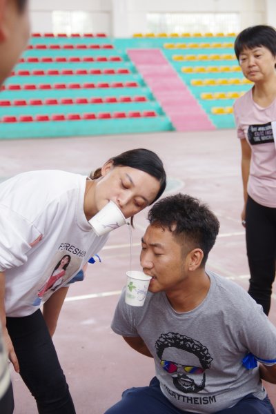整個活動共有12個游戲節目:螃蟹接力賽跑、托乒乓球賽跑、袋鼠跳接力賽、摸石頭過河接力賽、定點投籃比賽、三人四足、杯水傳情、撲面而來、氣球吹杯、蒙眼彈瓶蓋、吃瓜比賽、企鵝漫步。一個個有趣的節目讓人笑得前仰后合,活動中團隊之間相互配合、永爭第一的競技精神讓人心潮澎湃,吶喊聲、笑語聲不時在場內響起。