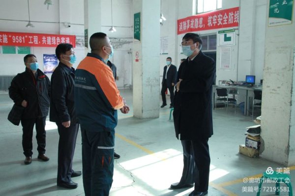 廉主席一行先后來到北旺投遞站、和平路營業(yè)支局、市分公司職工之家、崔壯投遞班、大廠祁各莊營業(yè)支局和大廠縣分公司職工之家進(jìn)行現(xiàn)場調(diào)研。廉福臣副主席在投遞之家詳細(xì)詢問了投遞員工資待遇情況、攬收情況、備戰(zhàn)雙11的物料是否準(zhǔn)備充足等情況;在金融網(wǎng)點(diǎn)職工之家詳細(xì)了解了網(wǎng)點(diǎn)員工的生產(chǎn)生活狀況和金融跨賽開展情況。在與市分公司領(lǐng)導(dǎo)班子及相關(guān)人員座談時,聽取了廊坊市分公司對工會重點(diǎn)工作推進(jìn)情況的匯報。