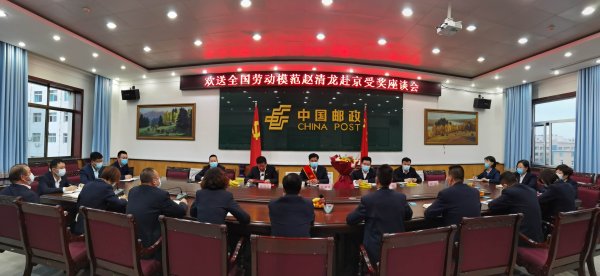 11月19日,甘肅慶陽市分公司召開歡送全國勞動模范趙清龍赴北京受獎座談會,市分公司領導、部門負責人及職工代表參加會議。