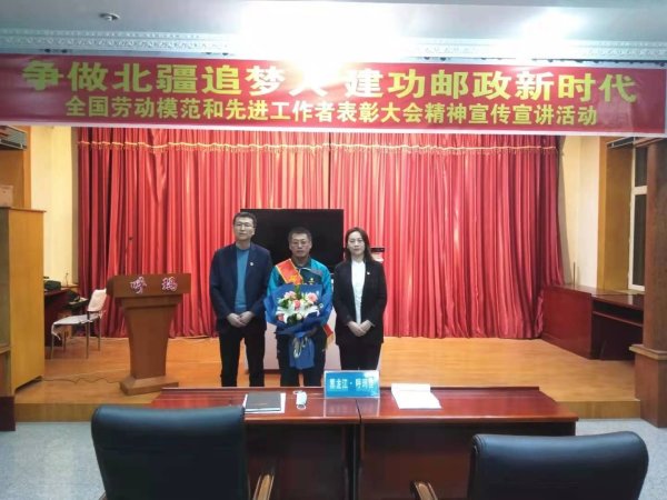 為弘揚勞動模范的先進事跡和高尚品質,更好地發揮勞動模范引領作用,12月22日下午,2020年11月當選的全國勞動模范韓幫緒同志在呼瑪縣分公司、郵政工會的組織下開展了“爭做北疆追夢人 建功郵政新時代”全國勞動模范和先進工作者表彰大會精神宣傳宣講活動,縣分公司全體職工參加了活動。全國勞模韓幫緒同志真實生動地講述了他作為一名綠衣使者,在平凡的崗位上做出了不平凡的奉獻,他用自己的實際行動鑄就了新時代的勞模精神和一名郵政共產黨員的奉獻精神,他的先進事跡展示了勞動最光榮、勞動最偉大、勞動最美麗的社會風尚。