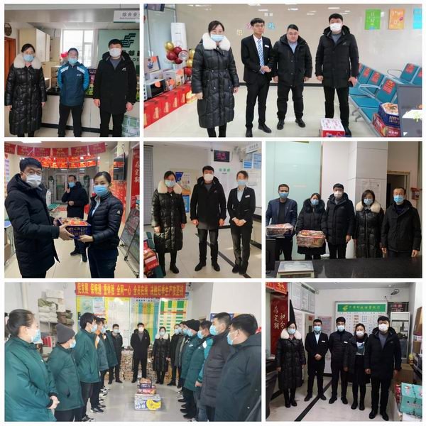 12月31日,正是年終結(jié)算之日,安圖縣分公司總經(jīng)理宋志強(qiáng)、副總經(jīng)理張宏月一行人組成慰問組,先后深入到全縣各金融網(wǎng)點(diǎn)、寄遞攬投部看望慰問一線員工,向堅(jiān)守崗位、奮戰(zhàn)在冰天雪地里的員工們致以親切的問候,對全體員工的辛勤付出表示誠摯的感謝,并為大家送去了新鮮水果、牛奶面包等慰問品。