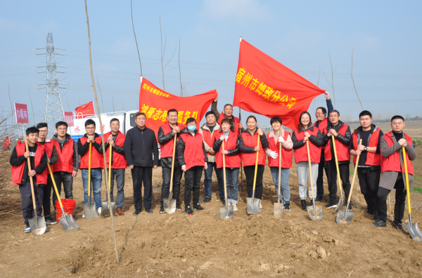 上午8時,大家乘坐大巴一同奔赴宿州城東沱河沿岸植樹點,在領取勞動工具后,三五人一組,分工合作,配合默契。在專業人員的植樹要領講解和技術指導下,大家揮鍬鏟土、扶苗植苗、圍堰澆水、培實新土……植樹現場紅旗飄揚、熱火朝天。眾人齊心效率高,經過大家近二個小時的勞動,一棵棵樹苗錯落有致、迎風挺立,為春天增添了濃濃的綠意和美好希望。 通過此次活動的開展,提升了員工親近自然、關愛自然、保護自然的生態意識,傳播了人與自然和諧共生的理念,掀起了植綠、愛綠、護綠的熱潮;同時,活動增進了交流,加深了感情,強化了團隊協作意識和凝聚力。活動結束后,大家紛紛表示:能通過自己的勞動,打造美麗的生活環境,是一件意義非凡的事。在將來的工作和生活中會更加愛護樹木、保護綠化,會為共建綠色企業貢獻自己的力量。