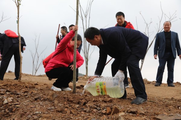下午14時許,市分公司領導及干部職工來到黃陂區李集街珍珠嶺村龍王尖植樹造林基地山坡上,一同勞動,揮鍬挖土。植樹過程中,大家齊心協作,把苗扶正,鏟土入坑,培實新土,道道工序做得認真細致。經過一番熱火朝天的勞動,一棵棵新栽的苗木迎風挺立,把山坡裝點得生機盎然。