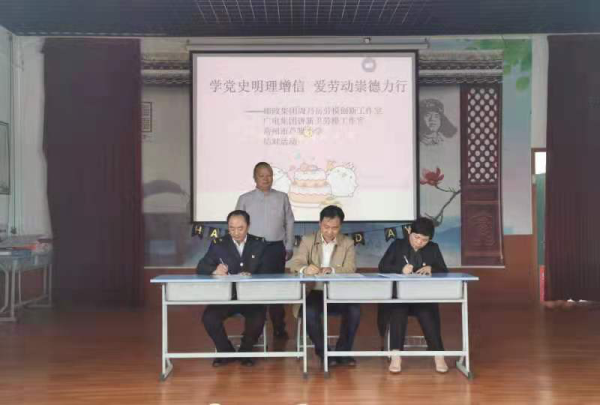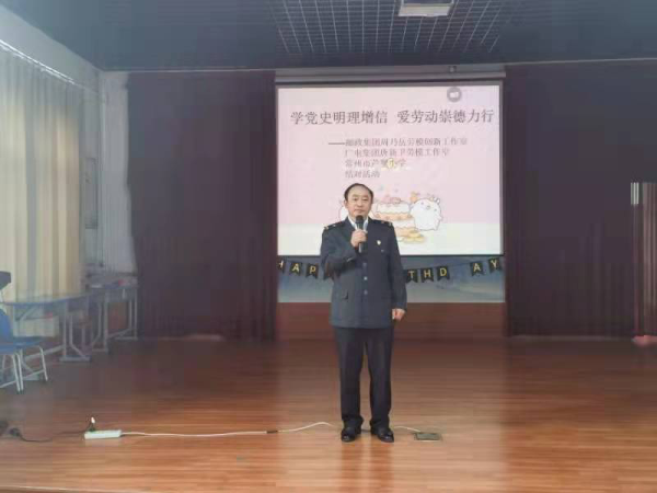 4月28日下午,“學黨史明理增信、愛勞動崇德力行”勞模工作室結對進校園活動在常州市蘆墅小學隆重舉行,常州郵政周乃岳勞模工作室和常州廣電唐新衛勞模工作室與蘆墅小學共簽結對共建協議。今后兩個勞模工作室將積極發揮自身優勢和特色,助力校方把勞動教育納入人才培養全過程,讓學生們樹立勞動最光榮、勞動最美麗的觀念,更加熱愛勞動,尊重普通勞動者,形成正確的世界觀、人生觀、價值觀。廣電唐新衛勞模為大家播放了自己團隊制作的黨史教育微視頻,帶領師生們一起重溫百年黨史光輝歷程;郵政公司周乃岳勞模結合自身經歷談了自己的入黨初心以及如何成長為勞模的心路歷程,對孩子們開展了勞動教育。兩位勞模還為該校30位困難學子捐贈了裝有學習用品的愛心包裹。