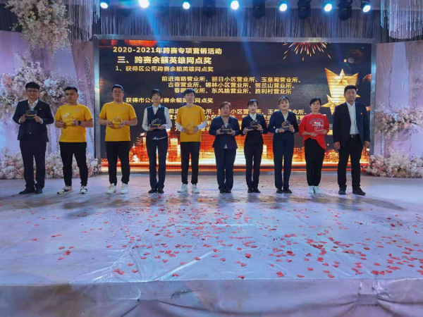 為總結表彰代理金融(2020-2021)跨年度專項營銷活動、2020年全市優秀營銷項目及特快專遞業務2021年一季度“金牛迎春”勞動競賽中涌現出的先進集體和個人,在石嘴山市郵政工會的精心組織和籌備下,5月7日下午,石嘴山市分公司召開總結表彰會議。市分公司領導班子,全體員工;各縣區分公司領導班子、各部門主任、網點負責人、獲獎職工及獲獎職工家屬參加了表彰大會。