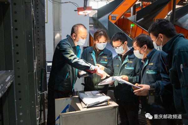 渝北空港,重慶市郵區中心局處理場地內,一輛輛綠色郵車往來正酣,自動化皮帶裝置全天候運轉,分揀作業人員穿梭其間,加緊將包裹遞向千家萬戶。