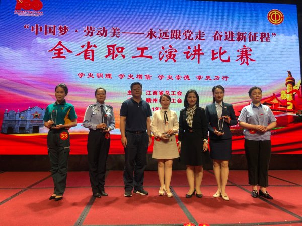 百年征程,波瀾壯闊。為隆重慶祝中國共產黨成立100周年,深入開展黨史學習教育,充分展示全省廣大職工銳意進取、朝氣蓬勃,不忘初心、感恩奮進的精神風貌,5月26日,由江西省總工會主辦、贛州市總工會承辦的“中國夢·勞動美——永遠跟黨走 奮進新征程”全省職工演講比賽在贛州市舉行,來自各設區市、贛江新區、省直管縣(市)、省產業(局、系統)工會、省總直屬基層工會選送的48名選手參賽。經過黨史知識問答和演講兩個環節的激勵比拼、評委現場打分,江西省郵政工會選拔推薦的參賽選手饒思媛以《戰“疫”中的“綠色力量”》為題的精彩演講在眾多參賽選手中脫穎而出,憑借9.54的高分在比賽中榮獲了銀獎,以0.01分的微小差距與金獎失之交臂。江西省郵政工會榮獲優秀組織獎。
