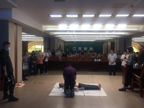 本次講座邀請了南昌市第三醫院急診重癥醫學科主任、中國研究型醫院學會衛生應急學專業委員會現場救援學組委員顏小明,南昌市第三醫院急診醫學科副主任、中國紅十字會救護培訓師資胡耀飛,為全省郵政員工講授了兩個方面的家庭急救知識:一是家庭急救知識:心肺復蘇、創傷急救,心、腦血管疾病救治與預防、中暑、溺水、酒精中毒、煤氣中毒等;二是心肺復蘇現場演練教學、海姆立克急救法現場演練教學等現場模擬器具家庭急救技術演練。