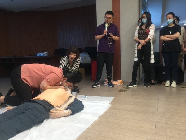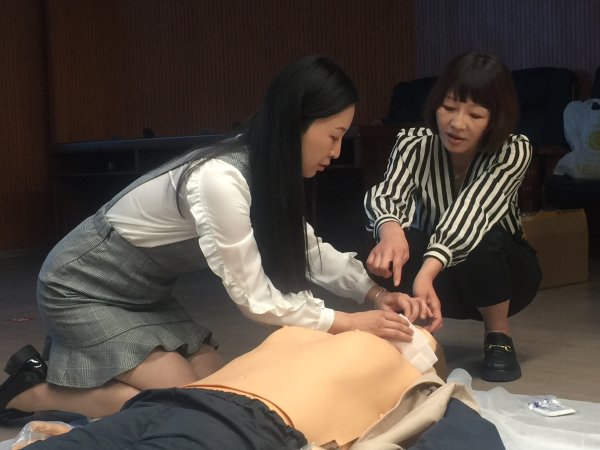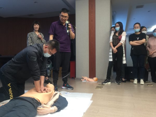 在現場演練教學環節,很多學員自告奮勇,在老師的指導下進行了心肺復蘇和海姆立克急救法演練學習,紛紛表示效果良好。