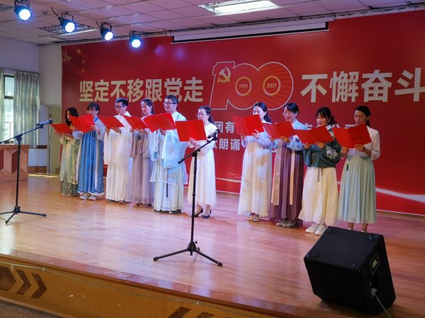 經過各工會精心策劃,活動分兩部分開展:先是選定10名職工身穿漢服,在市分公司八樓會議室進行詩歌朗誦,《屈原》《請把你的遺志交給我》《永遠跟黨走》,一首首不朽的詩篇,承載著對英雄們的無比崇敬和懷念。100年來,一代又一代中國共產黨人頑強拼搏、不懈奮斗,拋頭顱、灑熱血,領導中華民族實現了從站起來、富起來、到強起來的偉大飛躍,職工們聽得激情高漲!
