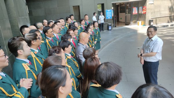 上海郵政合唱團受邀參與此次演出。演出開始前,市分公司副總經理丁永紅特地來到后臺,親切慰問參與演出的合唱團員,并勉勵大家用最動聽的歌聲向社會展示當代郵政人奮發向前,勇攀高峰的精神面貌。