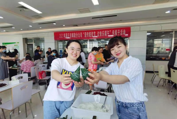 為迎接傳統(tǒng)佳節(jié),進一步豐富職工文化生活,市郵政工會于6月11日上午在職工食堂組織開展了包粽子活動,來自市分公司、市區(qū)分公司的100余名員工參加了本次活動。活動一開始,大家便熱情高漲,積極參與,通過合理分工,捋粽葉、填糯米、裝餡料、壓緊實、扎捆,相互交流心得,不一會兒就呈現(xiàn)出三角形、牛角形等各式各樣的漂亮粽子,大家手捧著親手包出來的粽子,臉上綻放著幸福的笑容。溫馨和諧的氣氛,營造了濃濃的“家”的味道,使大家深深感受到企業(yè)大家庭的溫暖,進一步增強了廣大員工的歸屬感。(河南省郵政工會)