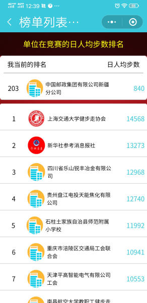 從活動開始到活動結束,中國郵政集團有限公司新疆郵政分公司共計有4995人參與了活動并上傳了步數,新疆郵政排名全國203位。
