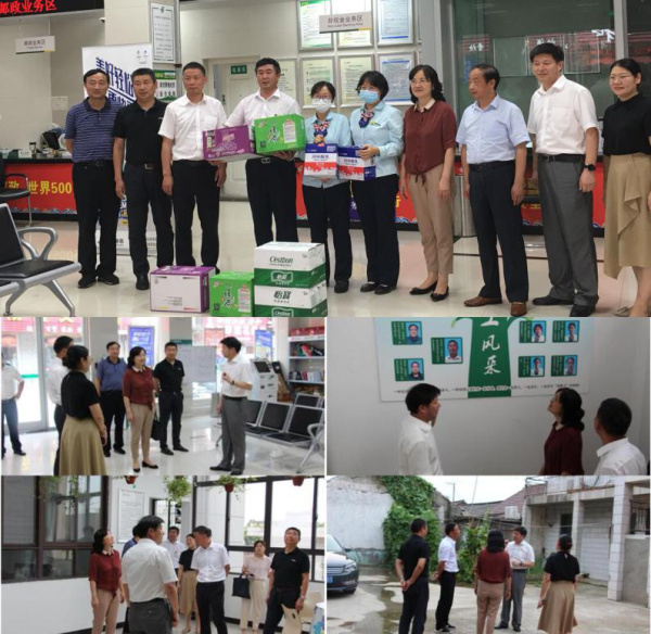 毛善群副主席一行人員在新橋支局,向高溫期間堅守在一線的職工表示慰問,為他們送上礦泉水、綠茶等清涼物資。并向職工了解日常工作情況和高溫勞動防護措施情況,叮囑一線職工做好防暑降溫措施,注意勞逸結合,保障自身的安全健康?,F場職工表示在炎熱的夏天,不僅身體感受到了清涼,心里也收獲了滿滿的溫暖。 毛善群副主席一行人員,聽取了市分公司楊文主席對郵政公司開展的普遍服務、助農鄉村振興、郵政金融、快遞上門服務、農村電商等工作的匯報;接著,在楊文主席陪同下,先后來到網點“小菜園”、新橋支局“職工小家”進行參觀。